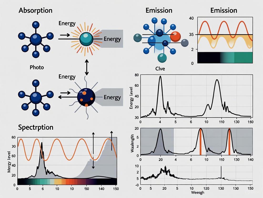 The energy of light is directly linked to its wavelength; shorter wavelengths correspond to higher energy photons [4]. This energy relationship is key to spectroscopy because it must precisely match the energy difference between two quantized states within an atom or molecule to be absorbed. The subsequent sections will detail these atomic and molecular energy states, the experimental methods used to probe them, and how this knowledge is applied in cutting-edge research and industry, such as pharmaceutical development.